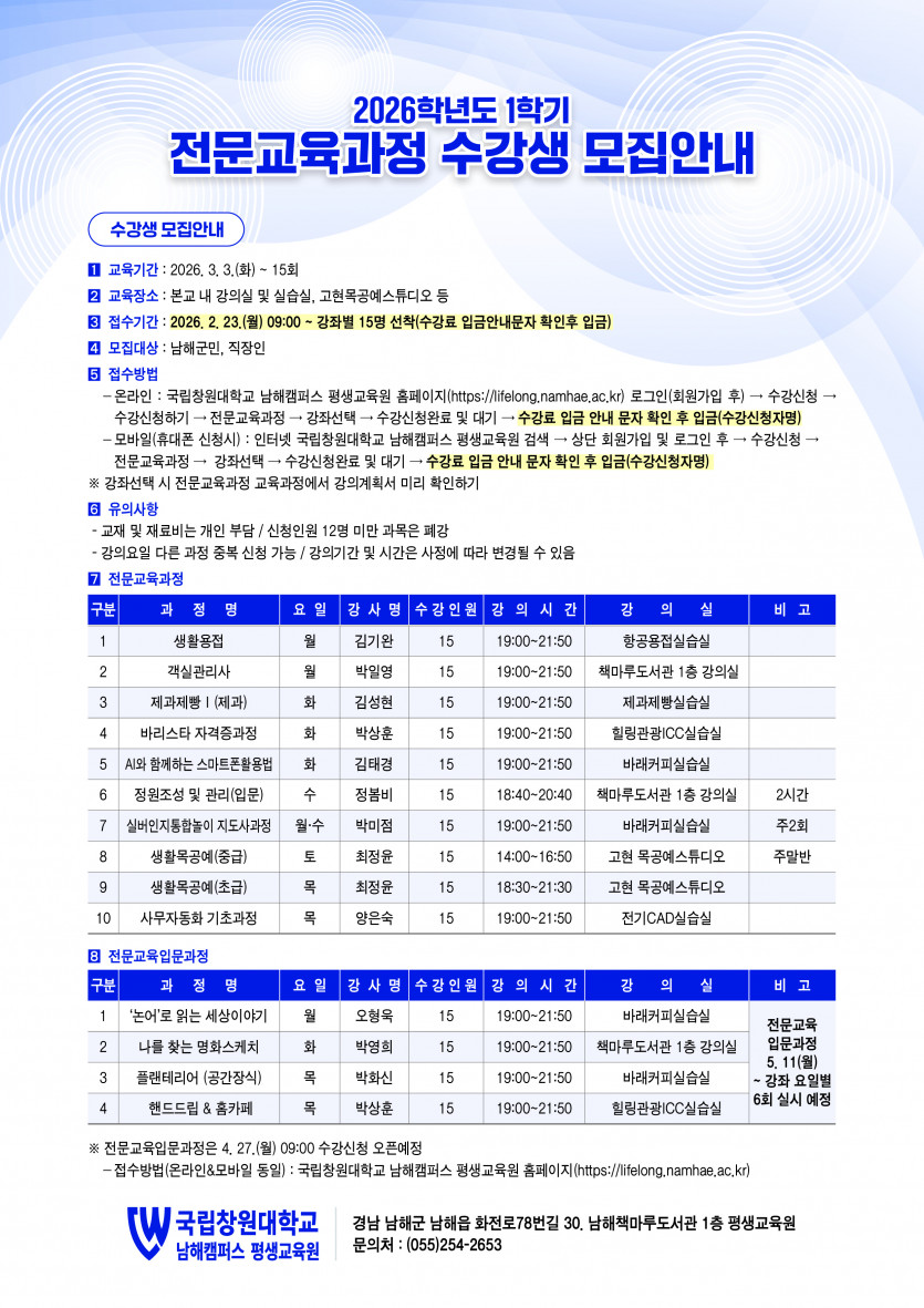 2026학년도 1학기 전문교육과정 수강생 모집 안내